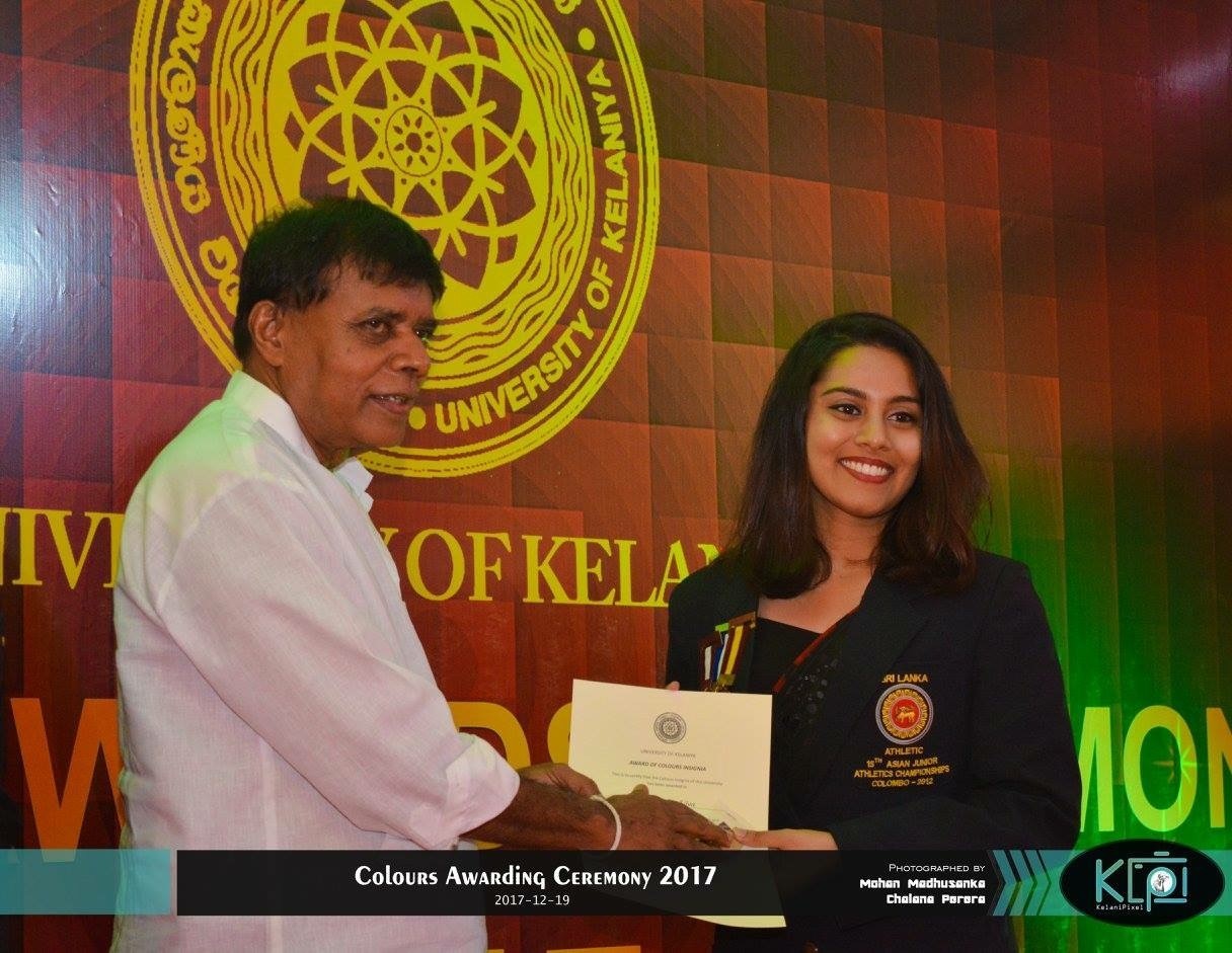 “Nethmi De Silva, currently a final year undergraduate of the Department of Marketing Management, University of Kelaniya was awarded colors for 3 consecutive years for track and field and has been awarded as the Best Performer for track and field in the year 2015 and 2016. She captained the track and field team in year 2017