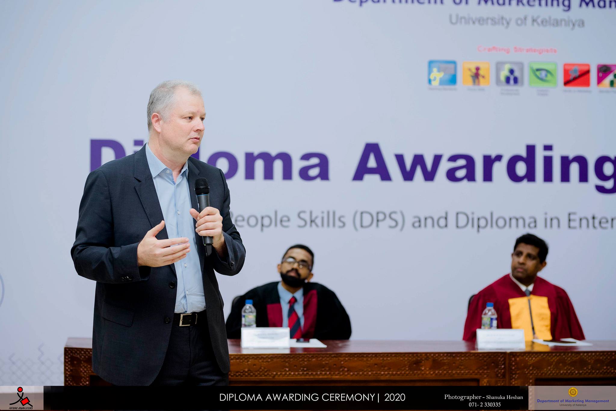 Diploma awarding ceremony was graced by invitees from both academia and the industry including Dr. P. N. D. Fernando - Dean of the Faculty of Commerce and Management Studies, Dr. Ravi Dissanayake - Head of the Department of Marketing Management, Mr. S. Uditha Bandara -Coordinator of Diploma in People Skills, Ms. Shanika Wijenayake - Coordinator of Diploma in Enterprise Resource Planning, heads of the other Departments, faculty members, Mr. Fabrice Cavallin - Managing Director of Nestle Lanka PLC, Mr. Deepal Kanchana – Operations Director of the Global Development Centre of attune Consulting and members of the external resource panel. In the ceremony, the strategic partners and the resource panel of both diplomas were recognized for their generous contribution in uplifting the quality of undergraduates.