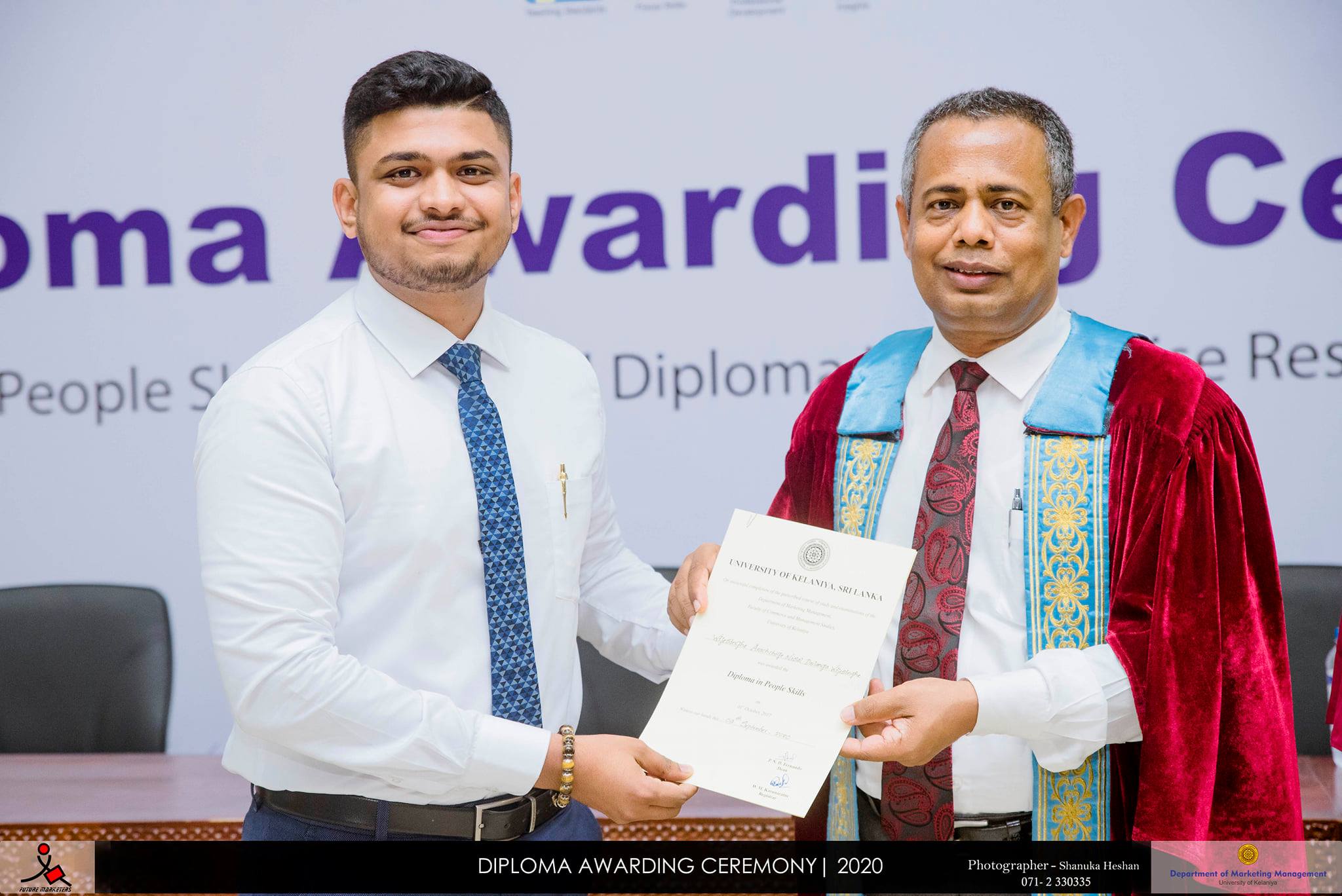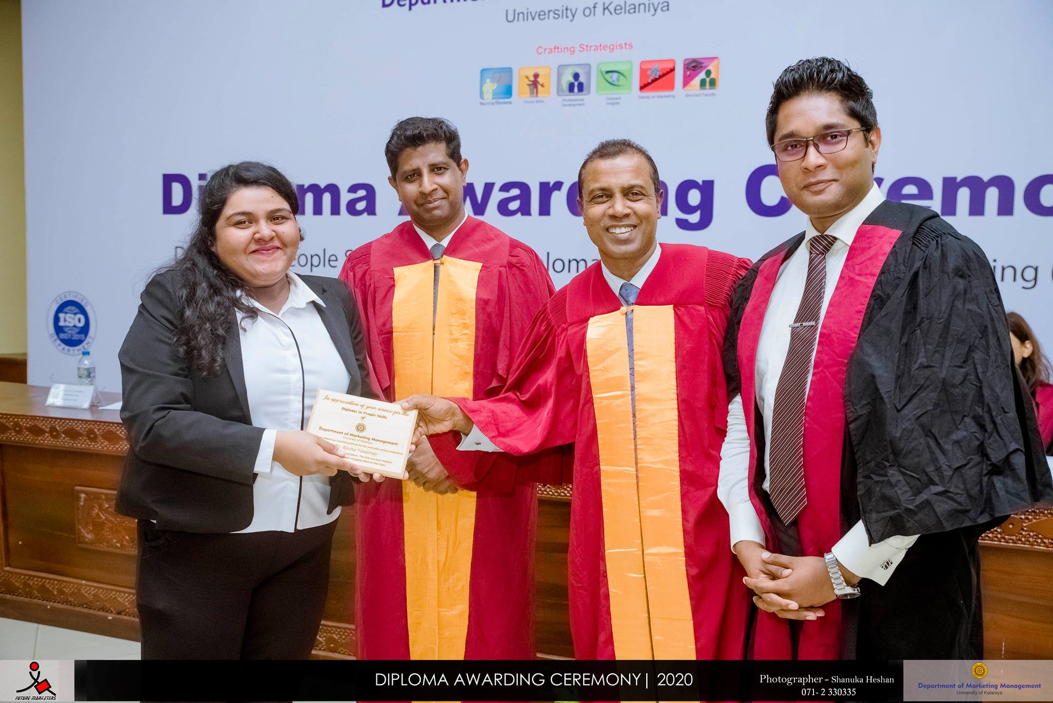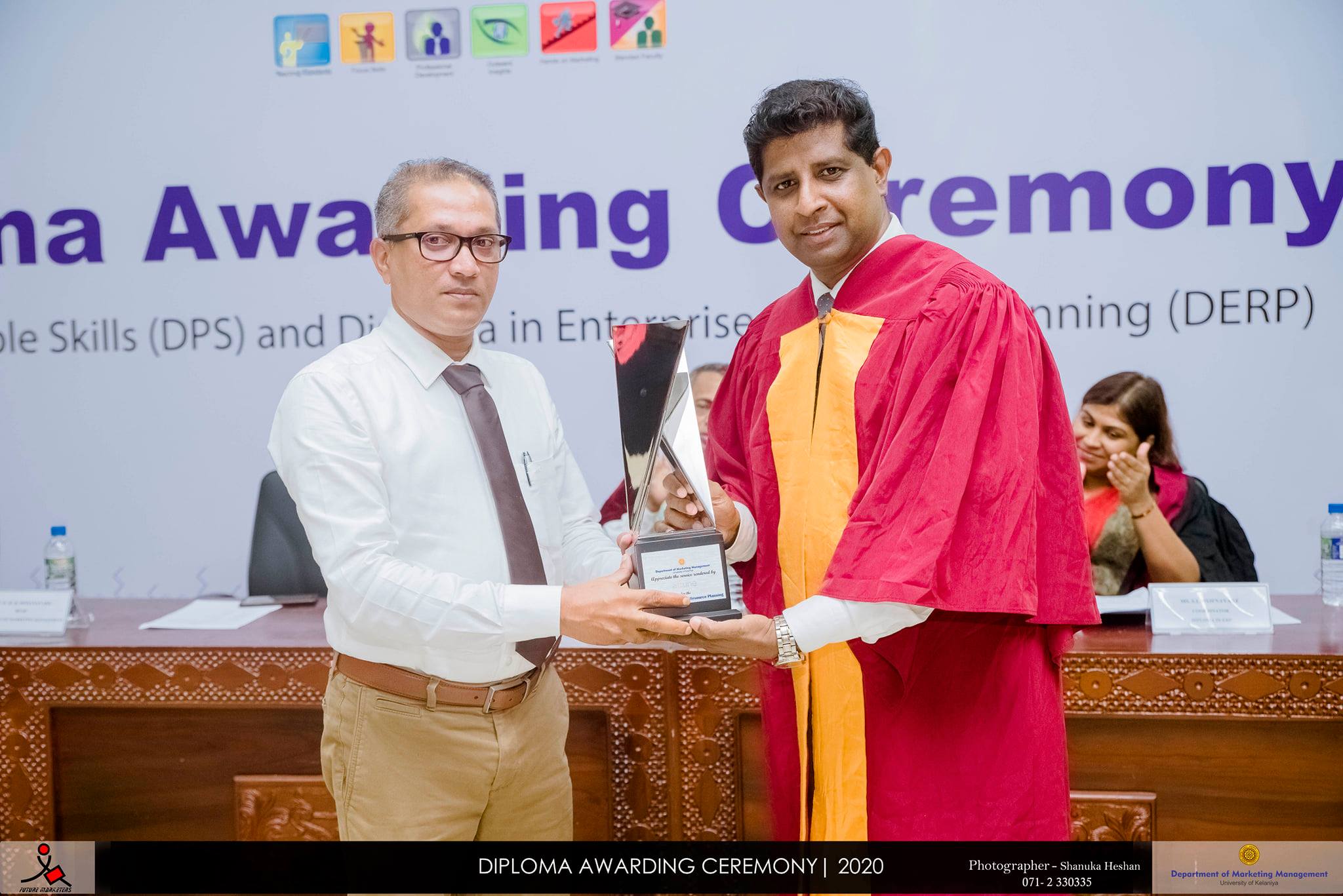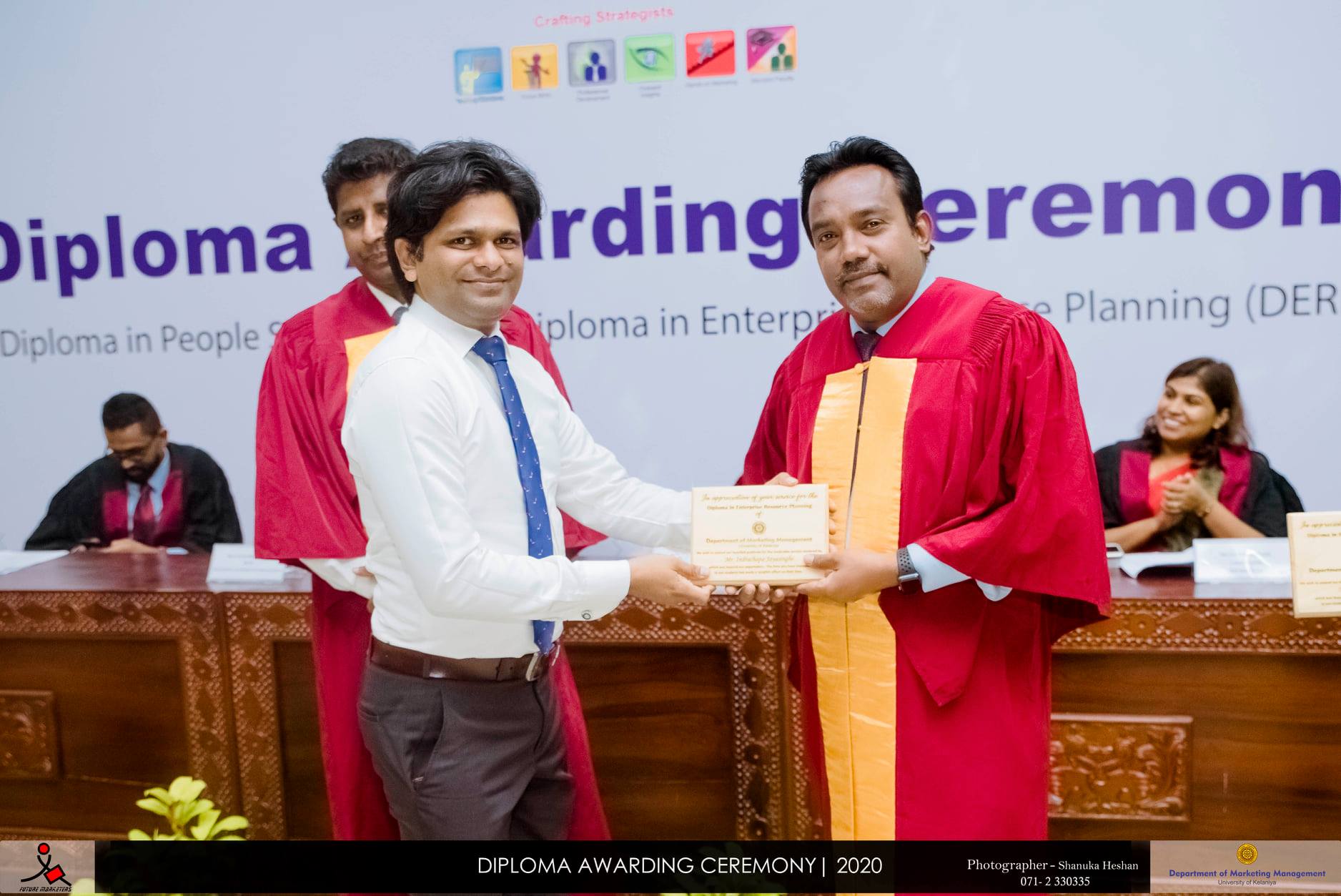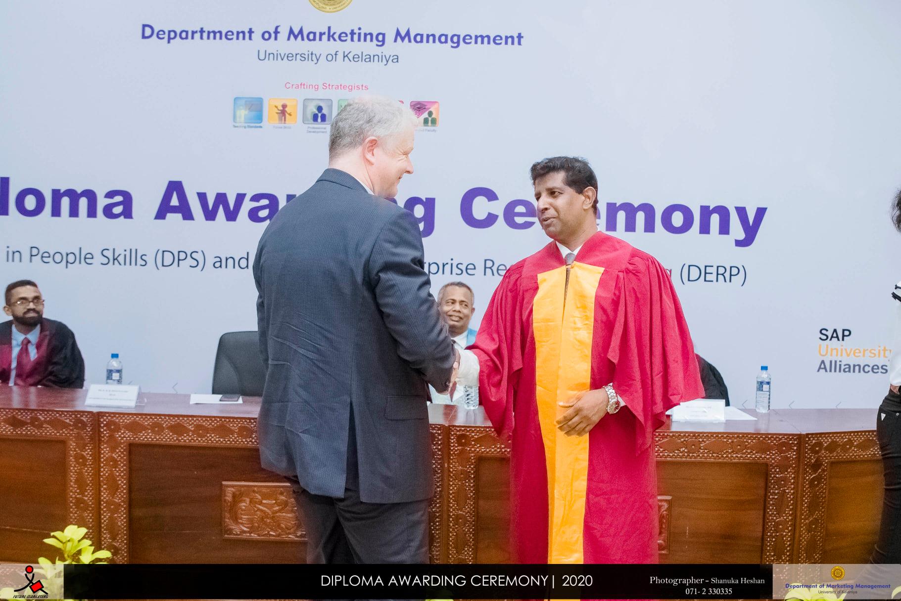 The Diploma Awarding Ceremony of Diploma in People Skills (DPS) and Diploma in Enterprise Resource Planning (DERP) offered by Department of Marketing Management, University of Kelaniya was held on 9th September 2020 at the Auditorium of the Faculty of Commerce and Management Studies. DERP and DPS are offered to the undergraduates of the Department of Marketing Management parallel to the degree programme. Prime objective of this innovative initiation is to make the graduates readily employable in the right employment. Specifically, DPS aims at inculcating the right attitude in undergraduates and Nestle Lanka PLC and Unilever Sri Lanka are the main strategic partners in this programme. DERP is a result of the SAP University Alliance Partnership of the Department of Marketing Management which aims at developing IT skills of the undergraduates and attune Consulting is the main delivery partner.