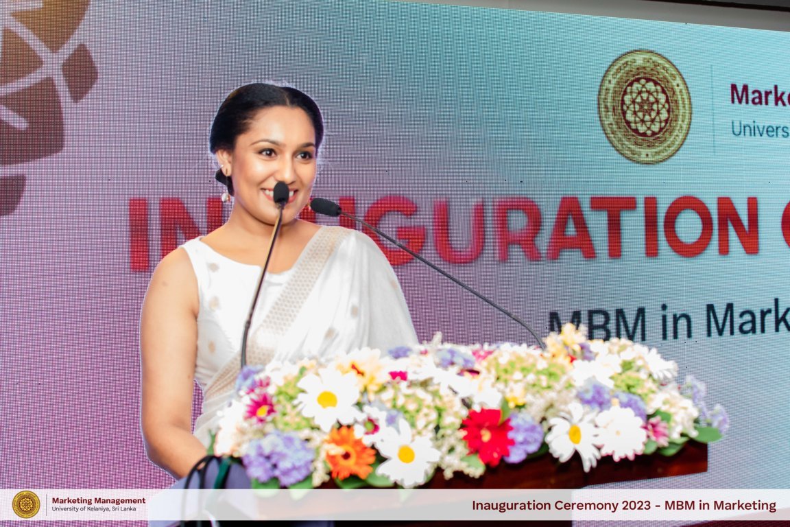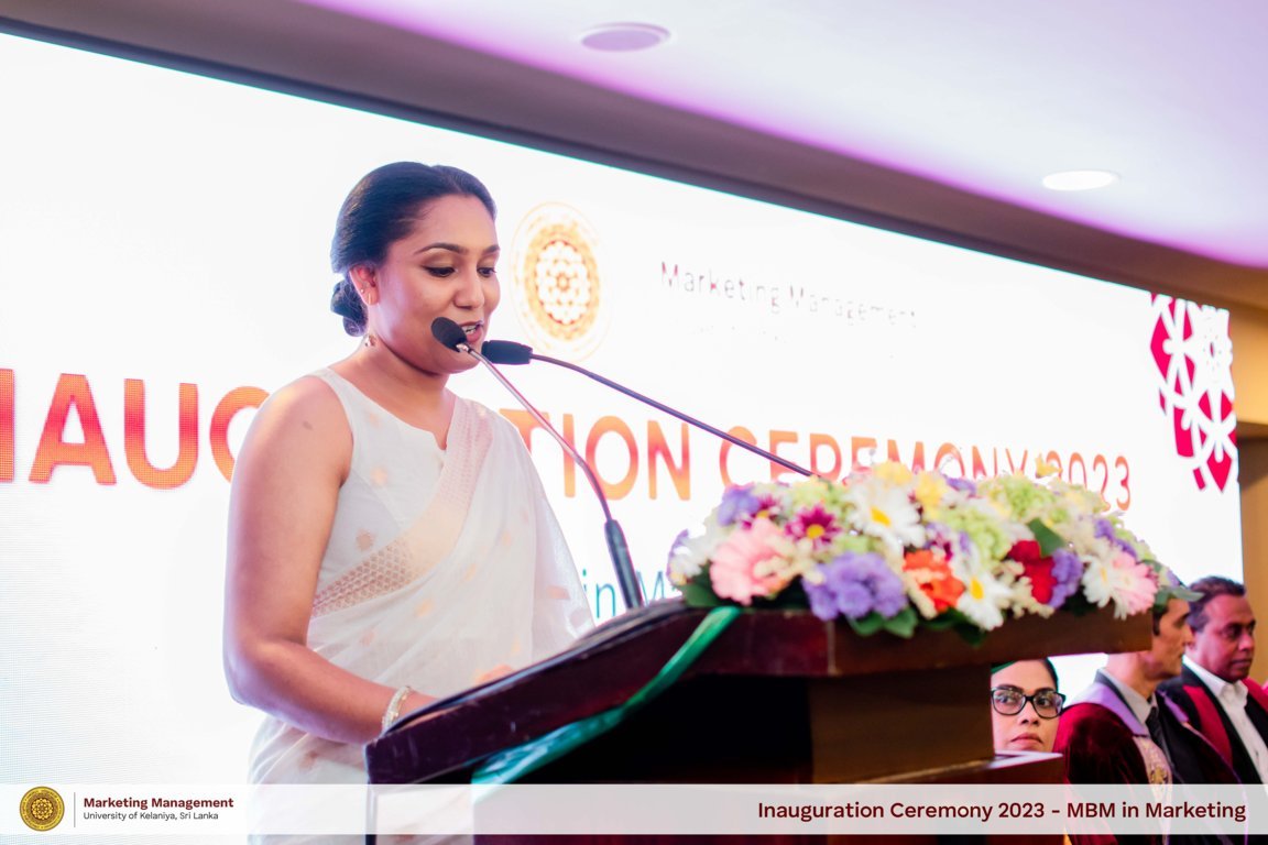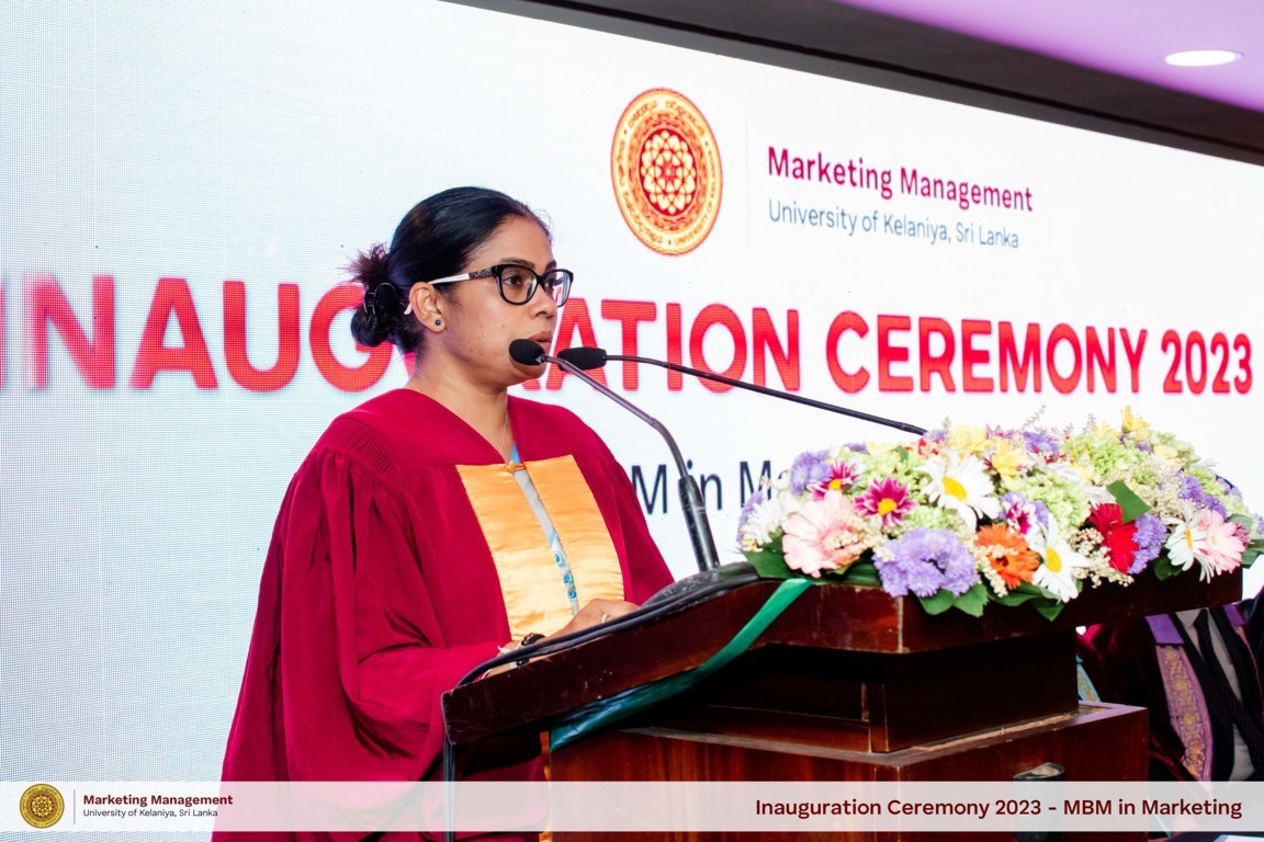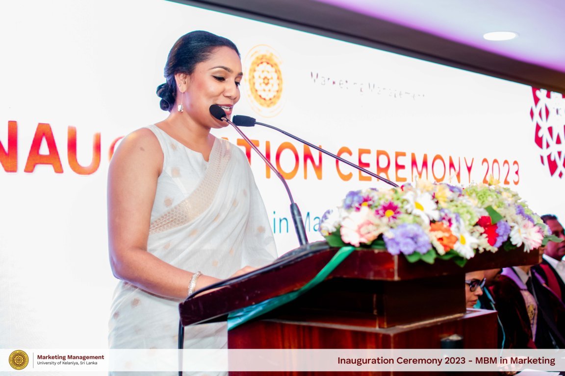 The Inaugural Ceremony for the 8th intake of the Master of Business Management in Marketing program was held on October 7th, 2023 at the Water's Edge Hotel. Head of the Department, Prof. Renuka Herath, addressed the gathering and stated that, As a responsible national University in Sri Lanka, Department of Marketing Management - UoK has been at the forefront of numerous advancements in the country's higher education industry and has made significant contributions to its economic development.
