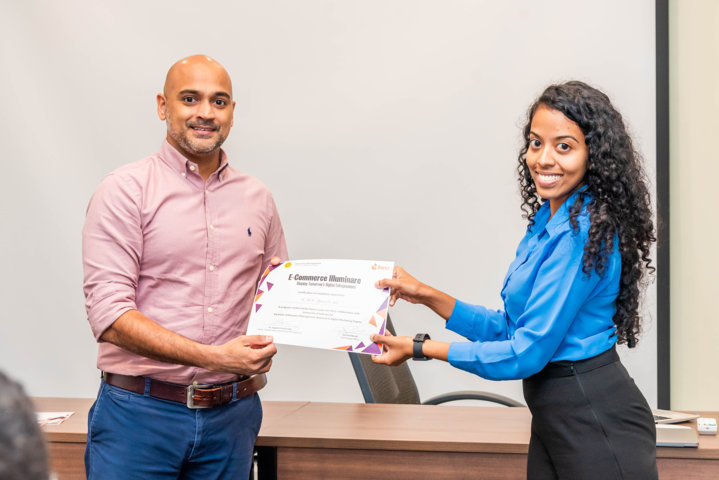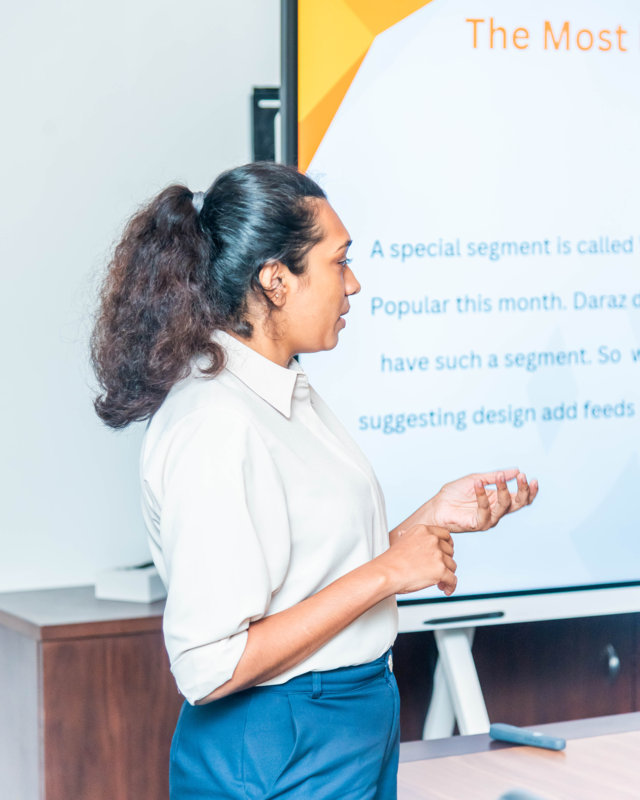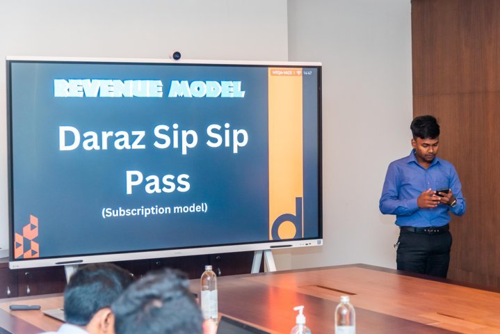 Students also witnessed two very insightful panel discussions of Daraz C-exco team and well renowned industry personalities where they discussed some important contemporary aspects of e-commerce and e-business fraternity. The program's highlight was the incorporation of real-world challenges through two comprehensive case studies: a commercial case study and a supply chain operation case study. After weeks of dedicated learning, on the 23rd of November 2023, at the closing ceremony, students presented their findings to a distinguished panel of judges at the Daraz head office premises.