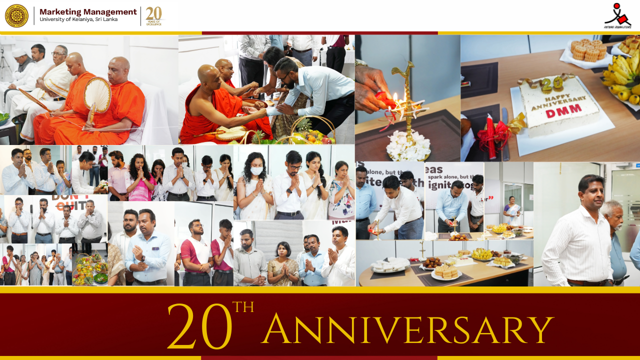 The Department of Marketing Management (DMM) of the University of Kelaniya celebrated its 20th Anniversary on the 1st of April 2025, at the department premises. This milestone marked two decades of dedication to academic excellence, innovation, and leadership in marketing education in Sri Lanka.