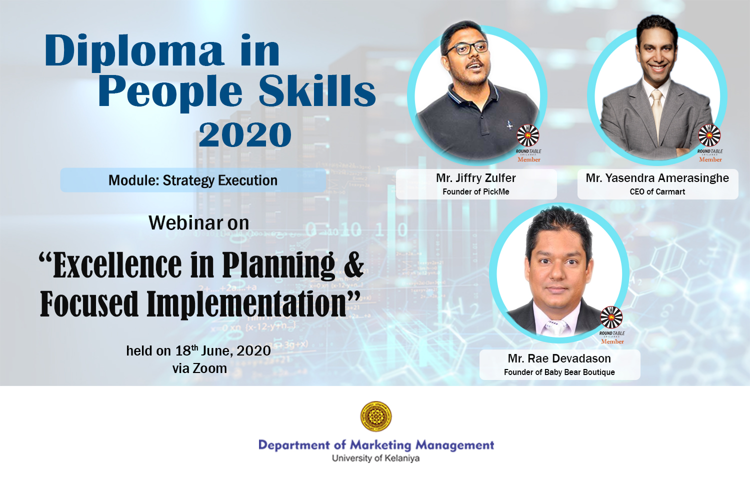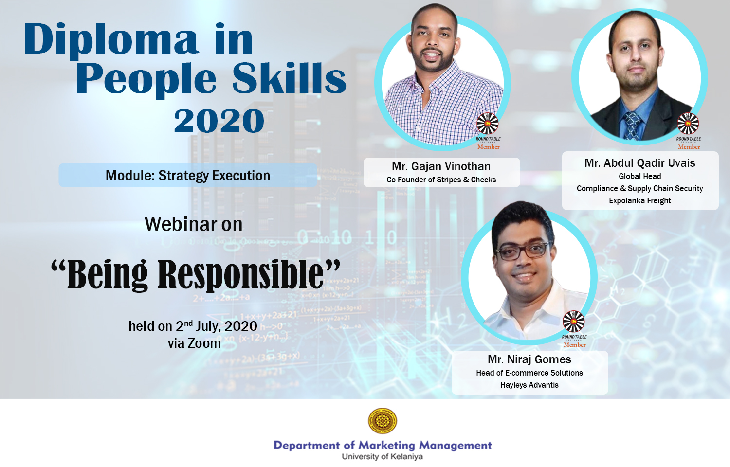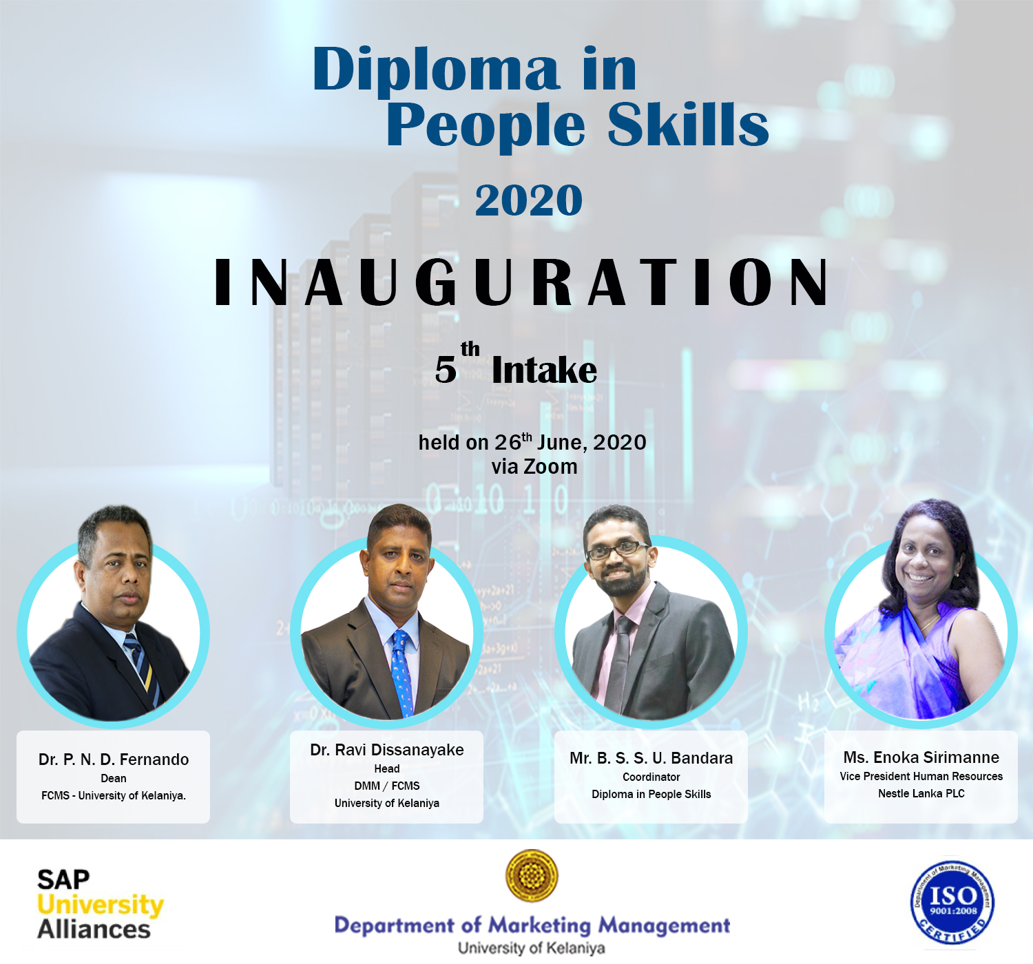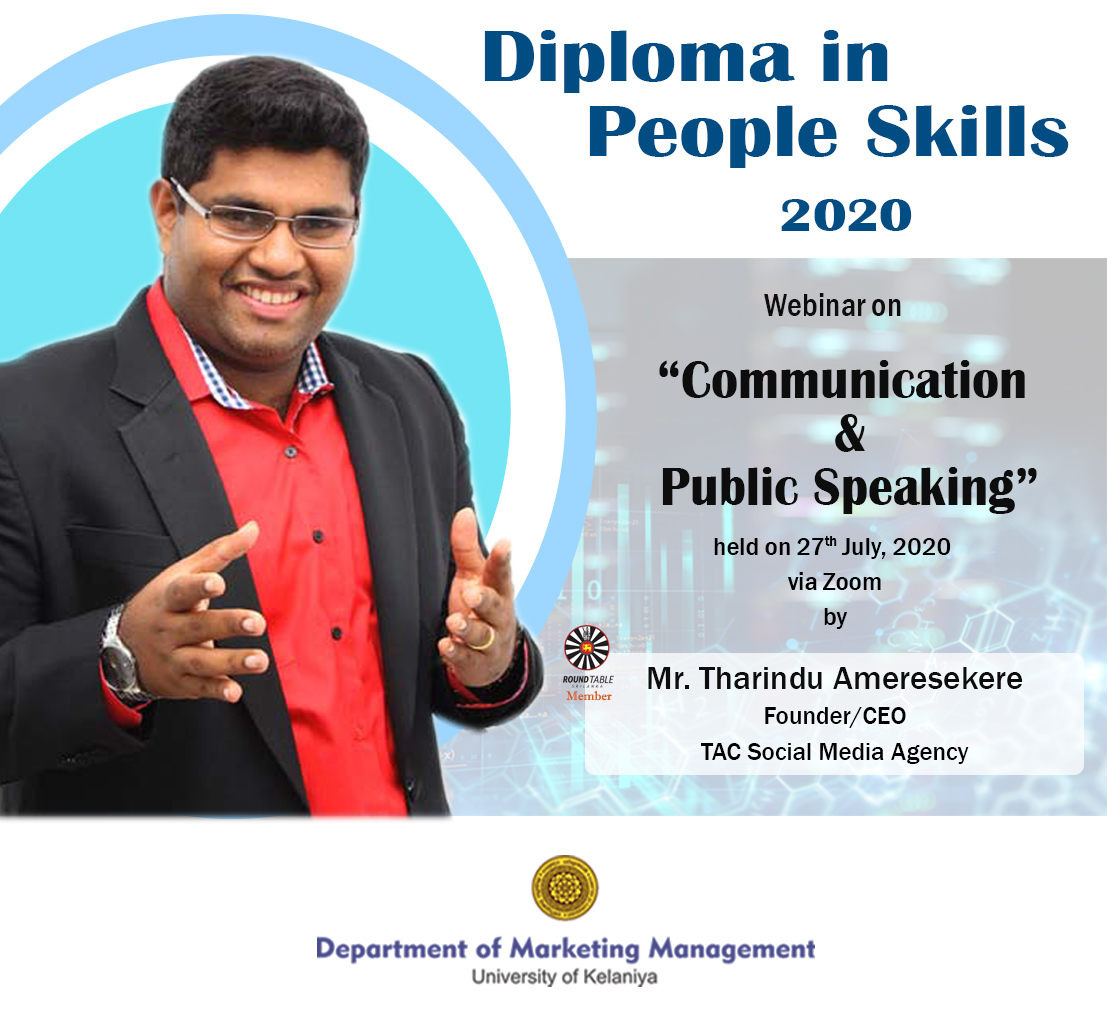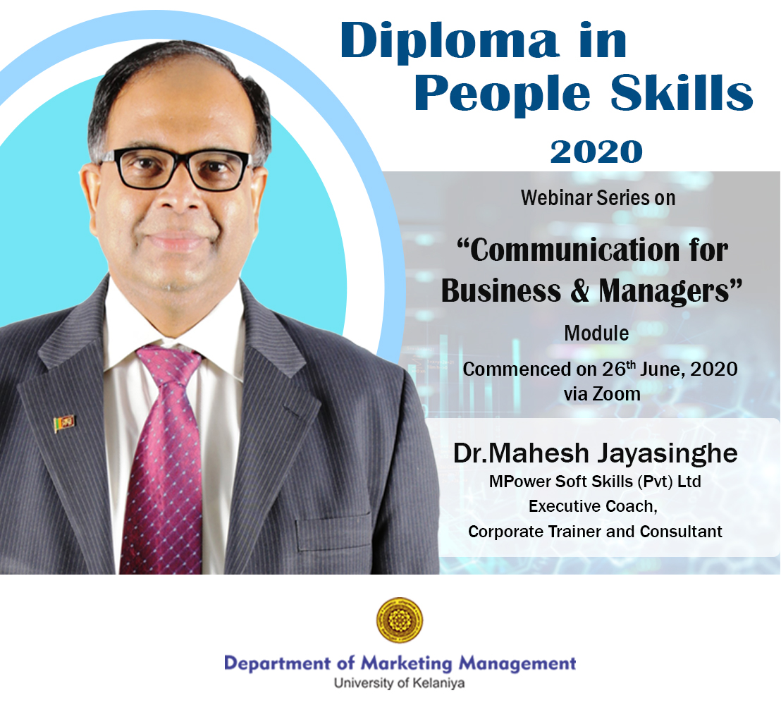 A webinar series on “Communication for Business and Managers” for the students of Diploma in People Skills Programme of the Department of Marketing Management of University of Kelaniya was commenced on the 26th July 2020 on the Zoom platform. This series of sessions is conducted by Dr. Mahesh Jayasinghe who is an Executive Coach, Corporate Trainer and a Consultant at Mpower Soft Skills (Pvt) Ltd.