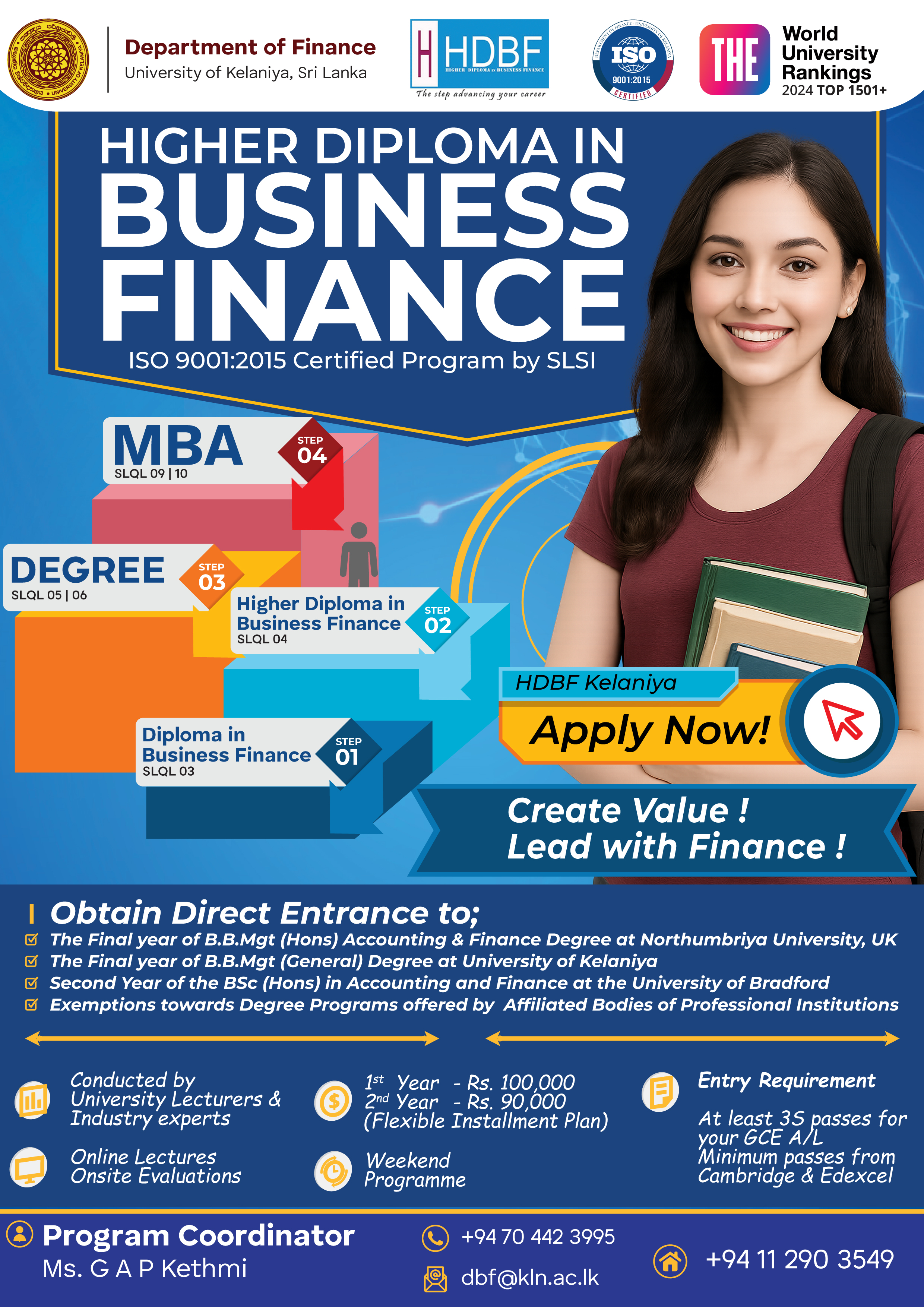 - Final Year Entry – B.B.Mgt (General), University of Kelaniya