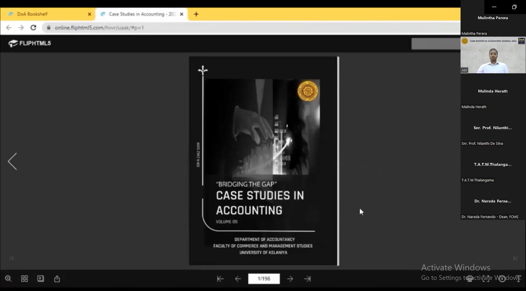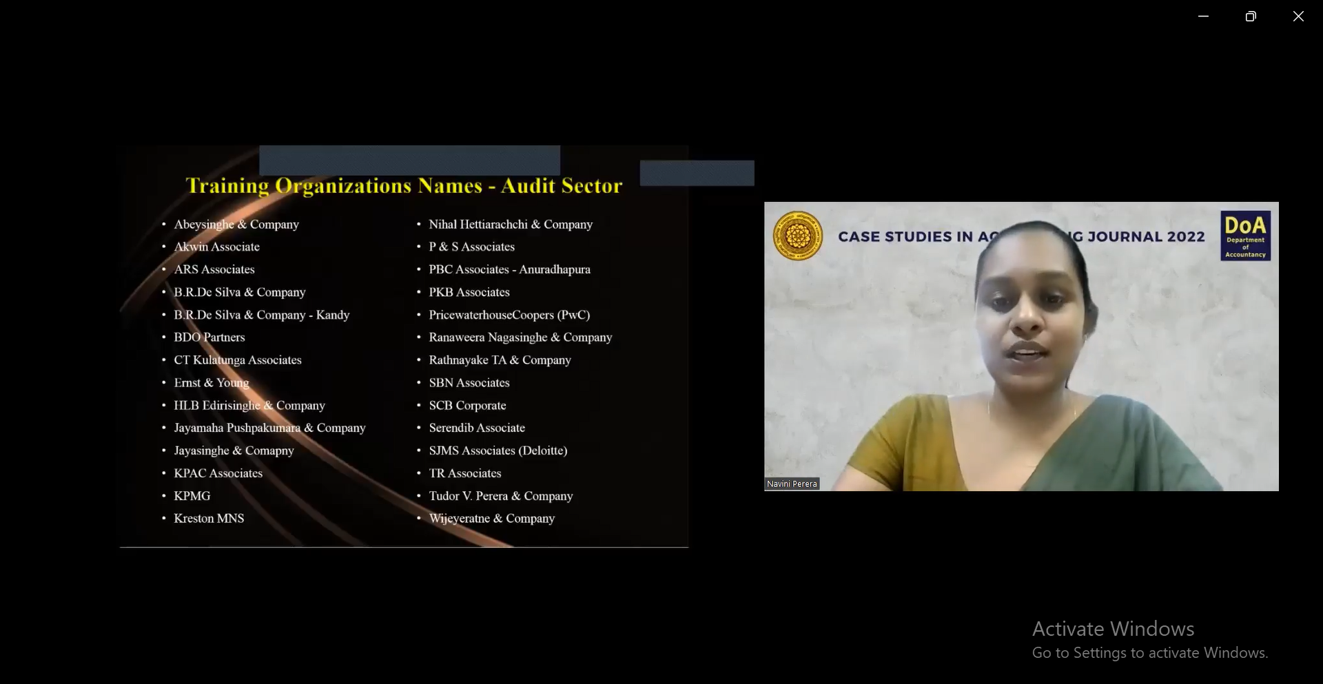 The launching ceremony of the “Case Studies in Accounting Journal 2022 – Volume 09” was organized by the students of Batch 2011/ 2012 of the Department of Accountancy and was held on Thursday, 20th of October 2022 via online (Zoom). “Case Studies in Accounting Journal” is one of the annual publications of the Department of Accountancy, which enables the students to publish the learning experiences they gathered during their compulsory internship period in different audit and non-audit sector organizations as case studies.