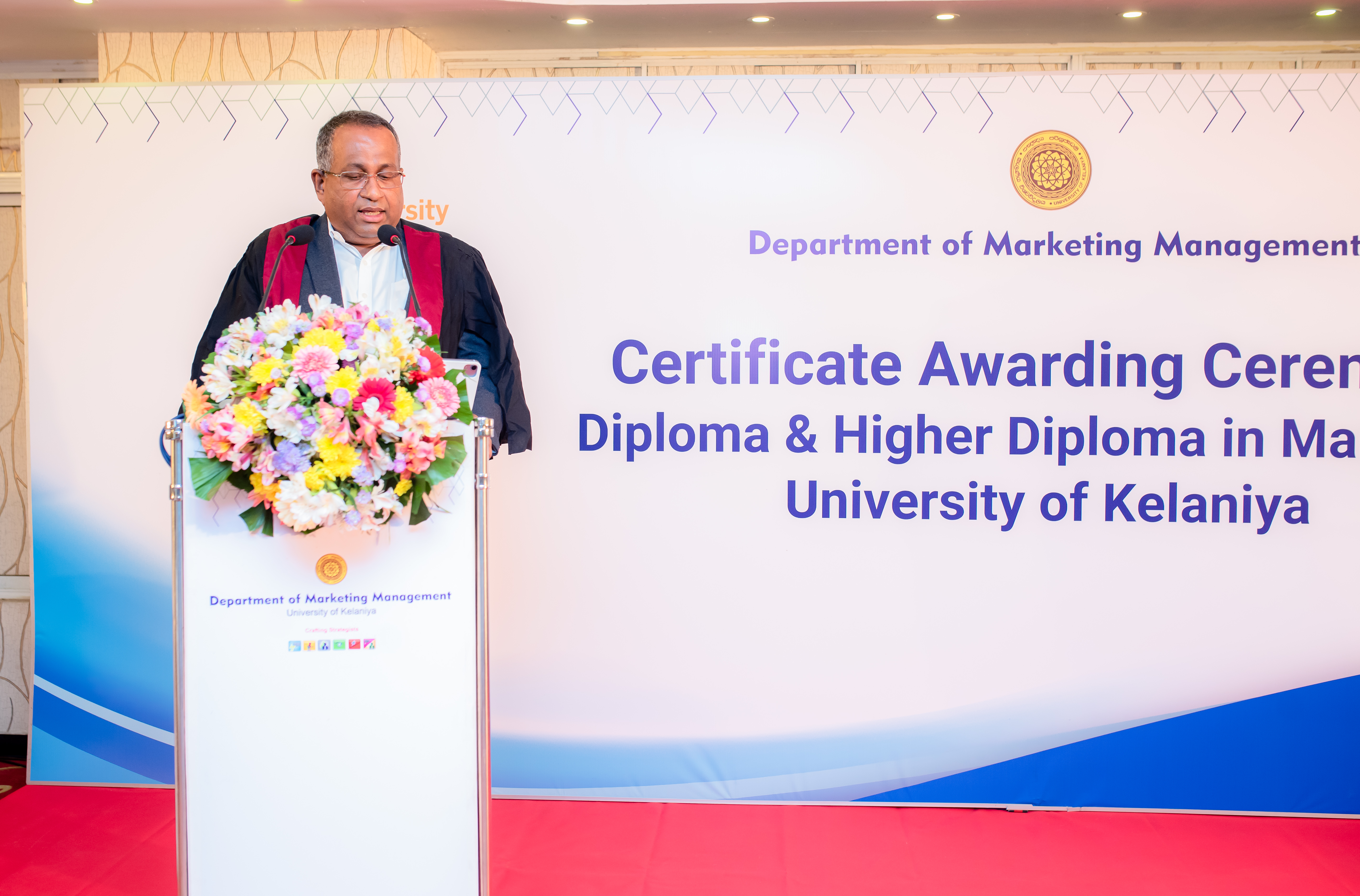 The certificate awarding ceremony of the Diploma in Marketing and Higher Diploma in Marketing offered by the Department of Marketing Management (DMM), University of Kelaniya was held on 20th February 2022 with the participation of Dr. P. N. D. Fernando - Dean of the Faculty of Commerce and Management Studies as the Chief Guest. Both these programmes were introduced with the prime objective of providing higher educational opportunities for the students who are unable to enter state universities after their Advanced Level Examination.