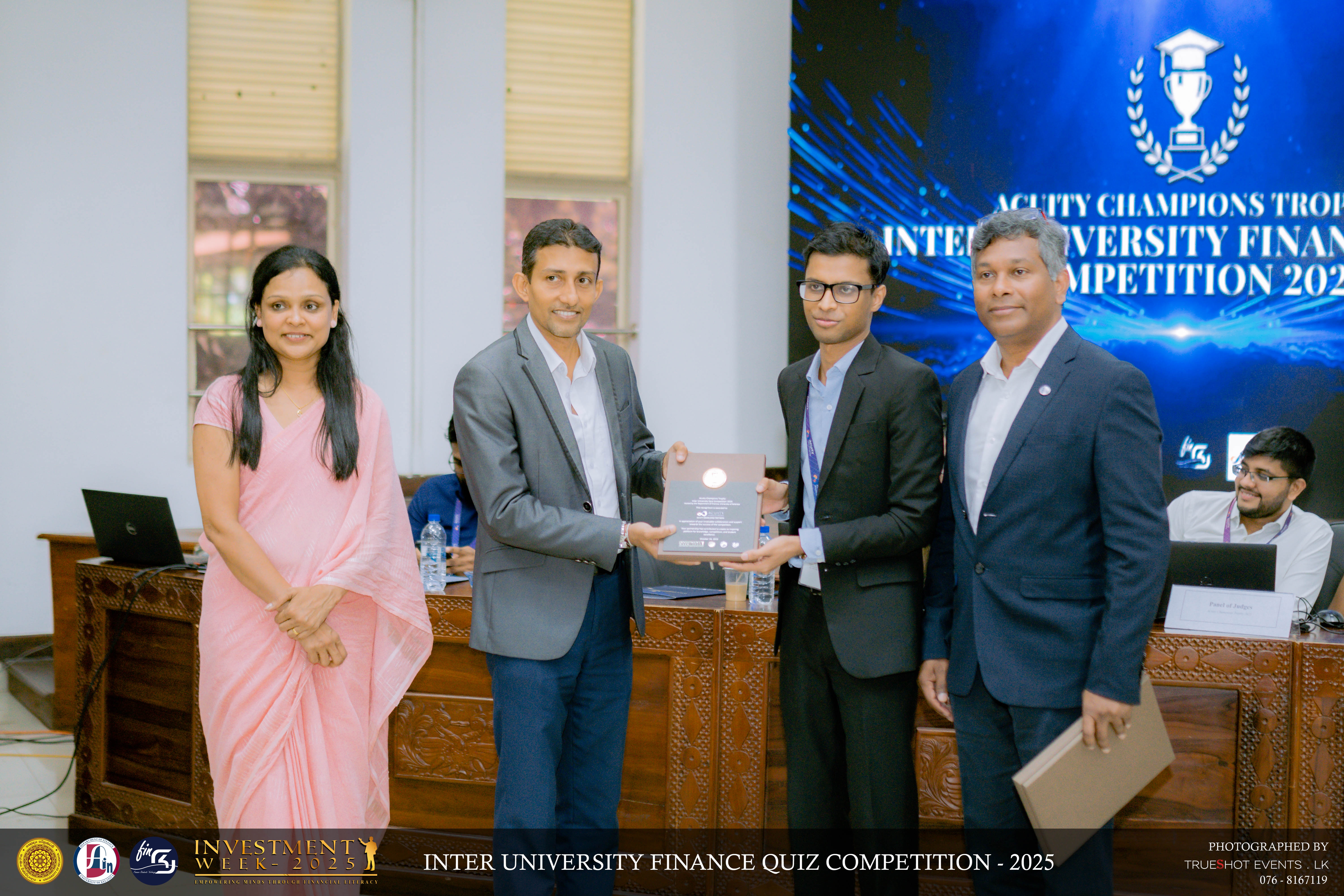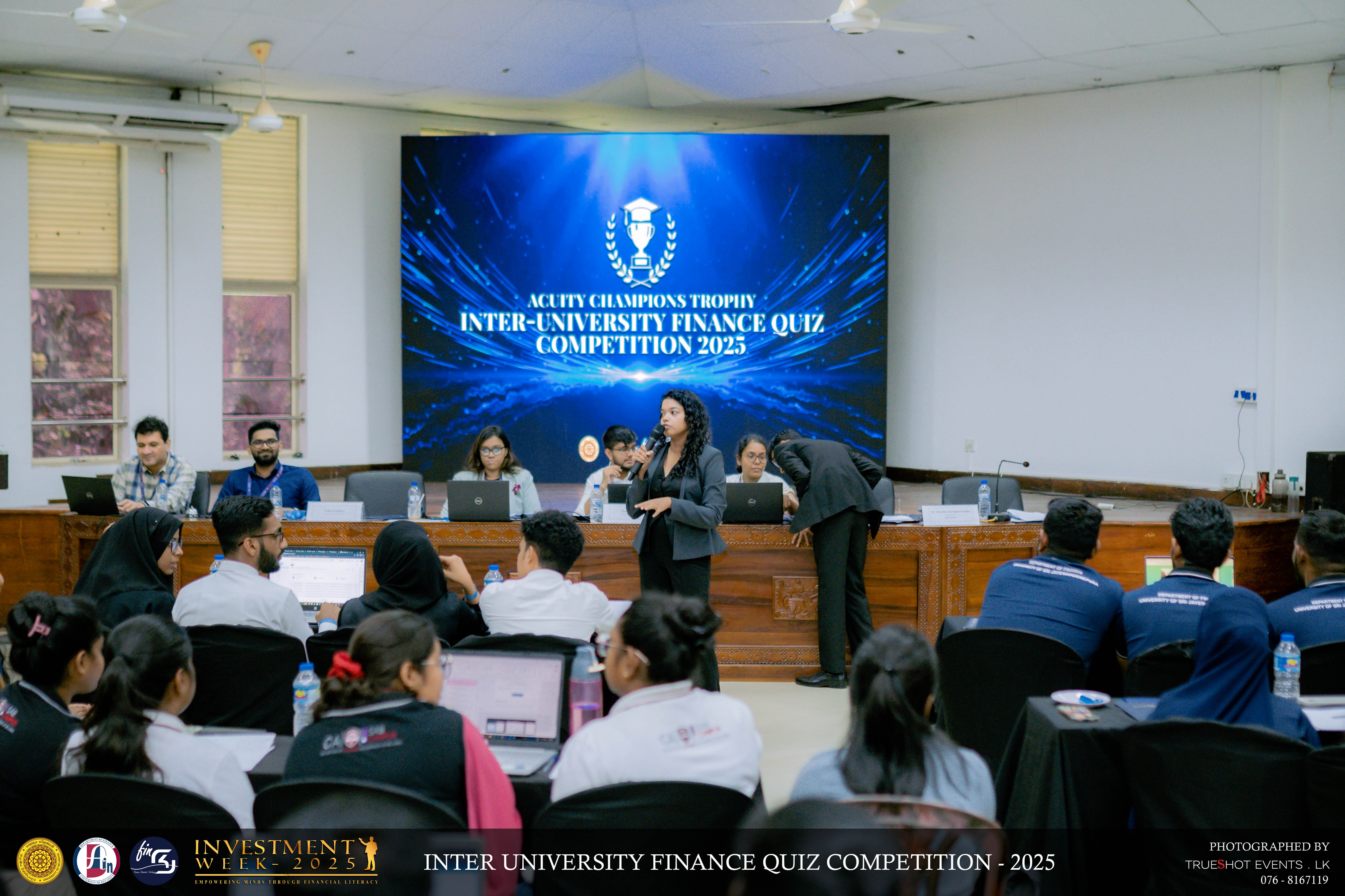 Continuing the series of impactful events under Investment Week 2025 the Acuity Champions Trophy, Inter-University Finance Quiz Competition 2025 was held on the morning of 16th October, bringing together the brightest young minds in finance from universities across Sri Lanka. Conducted in collaboration with Acuity Knowledge Partners, the competition brought together 22 teams from state and private universities across Sri Lanka to showcase their knowledge in finance, economics, investments, and current affairs.