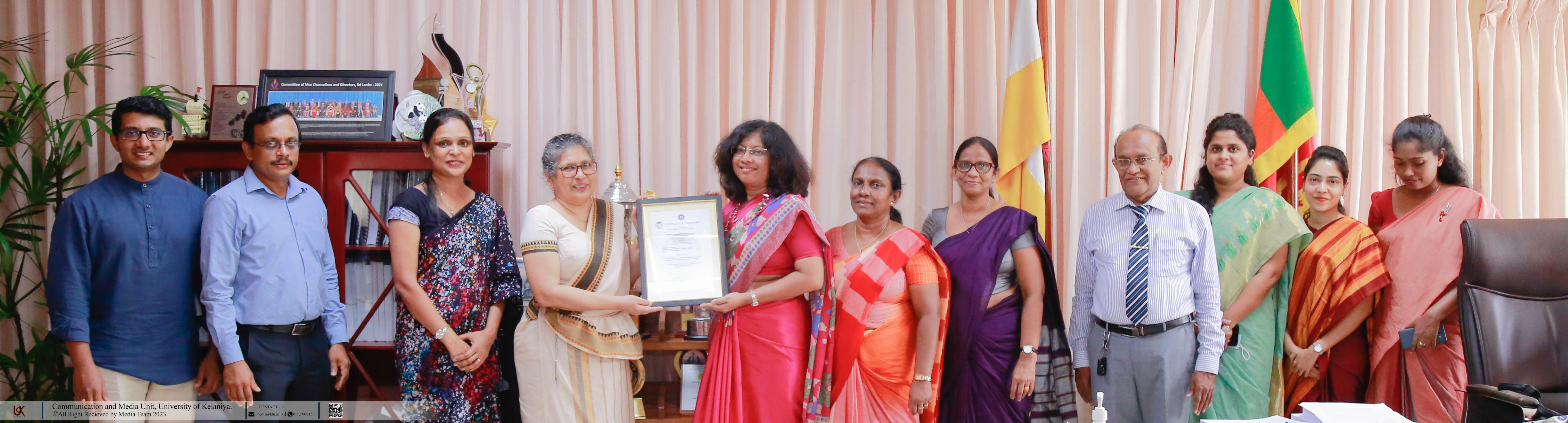 The Sri Lanka Standards Institution (SLSI) awarded the ISO 21001:2018 to Master of Business Administration of the Faculty of Commerce and Management Studies on the 28th of April, 2023. The awarding ceremony was conducted at the Vice Chancellor's office of the University of Kelaniya. This certification is valid for three years, starting from April 2023. The certification covers the design, development, and delivery of the Master of Business Administration Programme as per the Sri Lanka Qualification Framework. MBA unit thus becomes the first ever state-owned educational unit to receive the ISO 21001:2018 certification from the Sri Lanka Standard Institution.