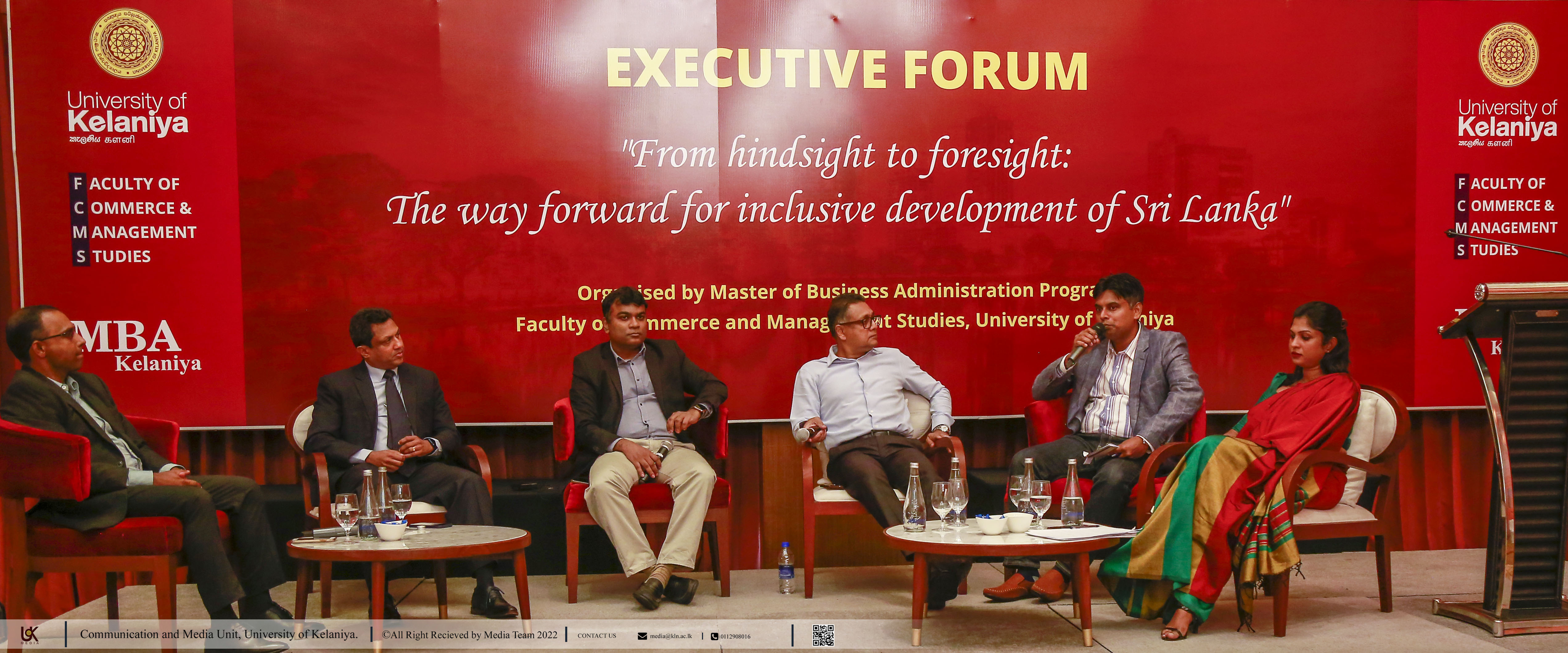 The forum was moderated by Dr. Sugeeth Patabendige, Senior lecturer, Faculty of Commerce and Management Studies, University of Kelaniya, and Ms. Sadathana Wickramasinghe (Representing MBA batch 12). The forum was graced by Dr. Narada Fernando, Dean of the Faculty of Commerce and Management Studies, Dr. Ruwani Fernando, the coordinator of the MBA programme, Dr. Srinath Dissanayake, the technical coordinator of the MBA programme, former coordinators; the management committee of the MBA programme, representatives of the academic staff of FCMS and the students of MBA batch 12 and 13.